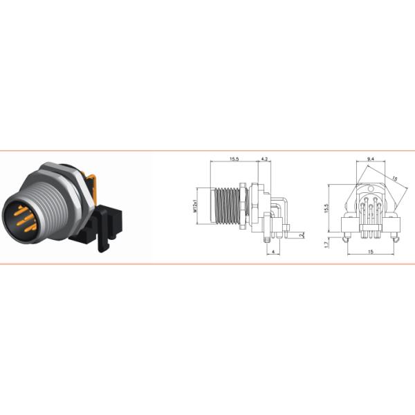90 Degrees Male Panel Mount Pcb Waterproof Connector M12 8 Pin Images |